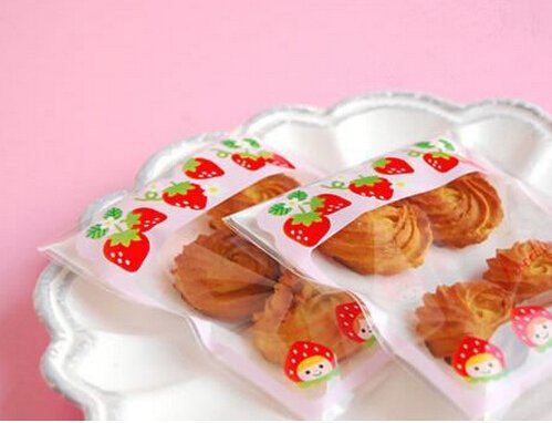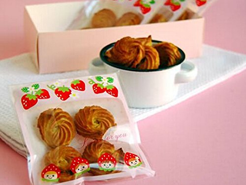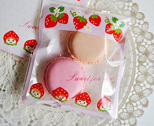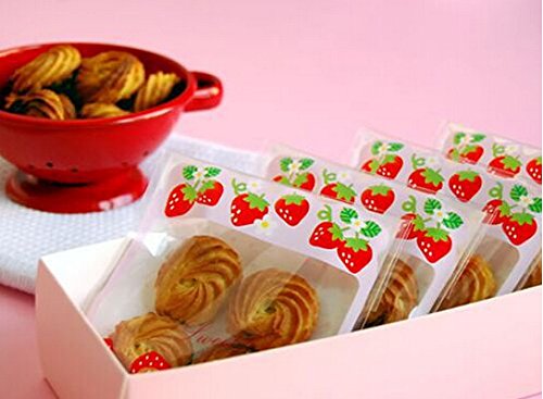 ONOR-Tech 100 PCS Lovely Cute OPP Self Adhesive Cookie Bakery Candy Biscuit Treat Gift Diy Plastic Bag (Strawberry)