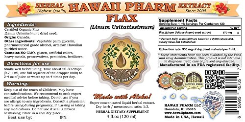 Studio : HawaiiPharm Publisher : HawaiiPharm Binding : Health and Beauty Product Description Flax (Linum usitatissimum) is a member of the genus Linum in the family Linaceae. It is native to the region extending from the eastern Mediterranean to India and was probably first domesticated in the Fertile Crescent. Flax was extensively cultivated in ancient Ethiopia and ancient Egypt. In a prehistoric cave in the Republic of Georgia, dyed flax fibers have been found that date to 30,000 BC, implicating it as the first domesticated species in human history. 0