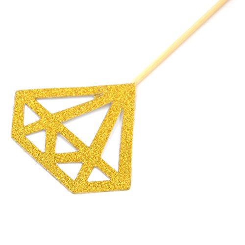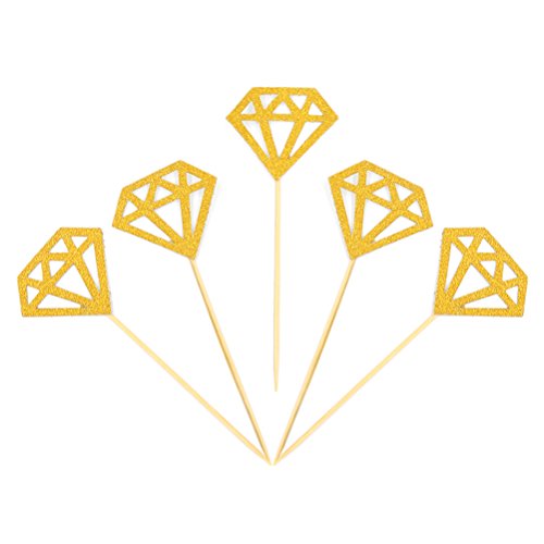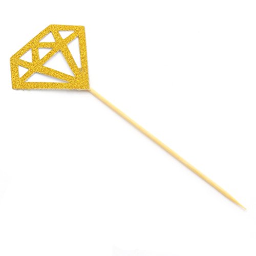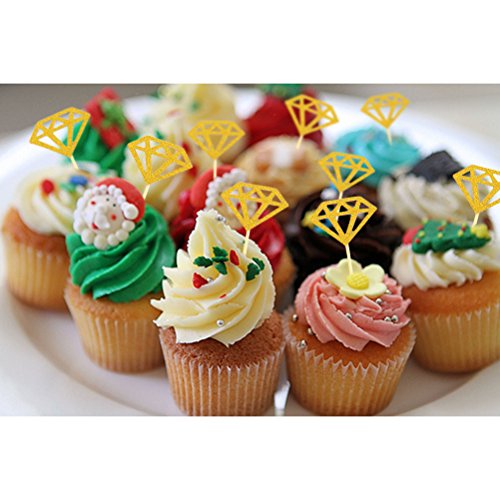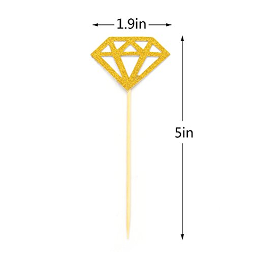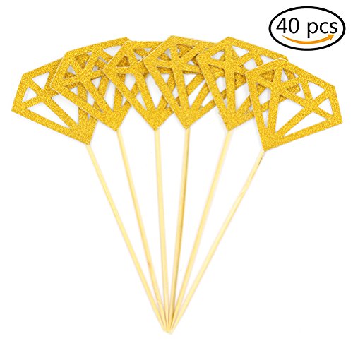 JUNKE 40 Pack Gold Glitter Diamond Cupcake Toppers Cake Decoration, For Wedding, Party, Bridal Shower, Valentine¡¯s Day Cupcake Toppers Decoration