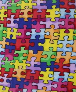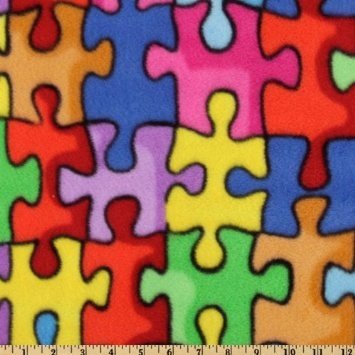 2-3/4 Yards Pre-Cut - Autism Jigsaw Puzzle Pieces Fleece Fabric (Great for Quilting, Sewing, Craft Projects, Throw Pillows & More) PreCut 2-3/4 Yards X 60" Wide