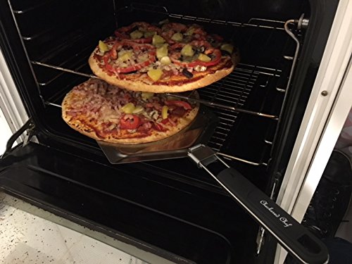 Whether you're reheating a restaurant pizza, cooking a pizza from scratch or even using a store bought crust, you'll wonder how you ever managed without the Checkered Chef Pizza Peel. Sliding a pizza in and out of an oven or barbecue would often result in burned arms or dropped pizzas. Not anymore! The sleek stainless steel paddle is thin yet sturdy enough to easily slide under whatever it is you're creating, unlike wooden peels which are often too thick to do the job.
