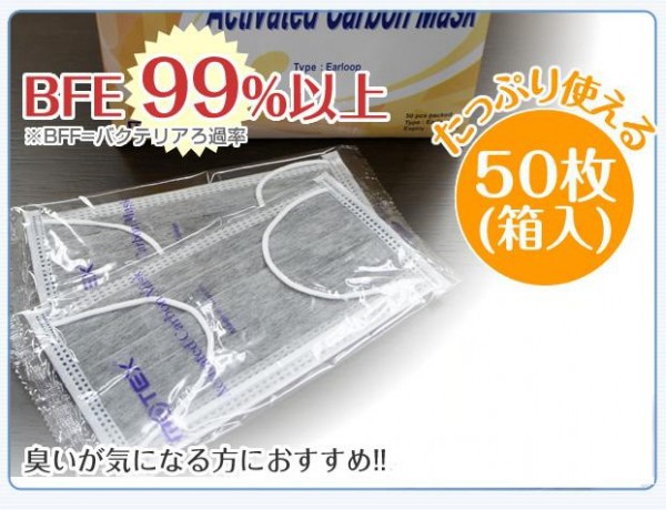 | 素材・材質 | ポリプロピレン 活性炭 メタル(ノーズピース部分) 丸ゴム 高機能4層フィルター 内側:ミクロ繊維不織布 中側:ハイレベル制電不織布(メルトブロー) 中央:活性炭不織布 外側:撥水加工不織布 |