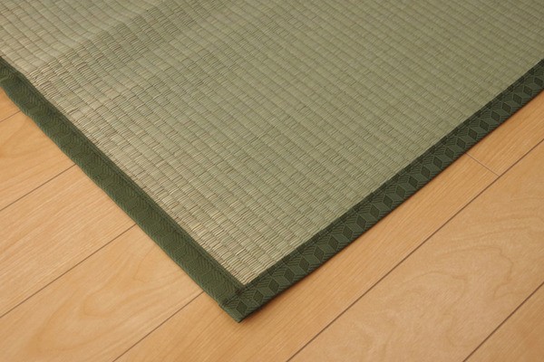 上敷きを敷くだけで畳のお部屋をリフレッシュ出来ます。日焼けしてしまった畳のリフレッシュに、新品の畳を汚さないためのカバーにご使用下さい。長さ105~110cmの国産(九州産)い草を使用しています。そのうち約95cmを使用しています。ヘリ際は強く白みを帯びます(日焼けではありません、い草の根元と先端部分の色です。)が、安価でお求めやすい商品です。い草は長いものほど高級になります。い草は先端部分が赤茶色く、根元が白く真中が青(緑)色です。真中の良質な青の部分を多く使用するほど、丈夫で綺麗な仕上がりとなります。またイ草は使用するうちに日焼けをしますが、真中の青の部分を多く使用したものほど、全体が綺麗にムラなく日焼けし、味が出ます。国産(九州産)のい草を使用しています。国産い草は一本一本が太く、表皮が厚く繊維がキメ細かいので弾力性があり、耐久性に優れています。い草には空気の清浄化作用、湿度の調節作用があり、汚れにくいといった特徴があります。い草に青森ヒバ加工を施しています。(抗菌、防臭効果)表裏の両面が使えて経済的です。
