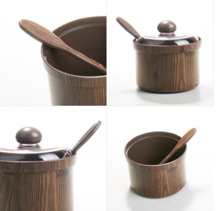 6 oz Tree Wave Pattern Condinment Pot with Lid & Serving Spoon - Seasoning Sauce Spice Salsa Dips Bean Paste