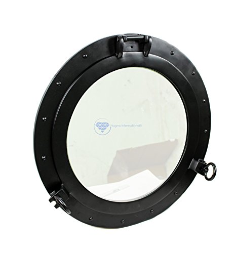 Premium Vintage Antique Rustic Polished Aluminium Black Porthole (15 Inches)