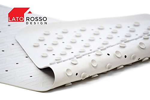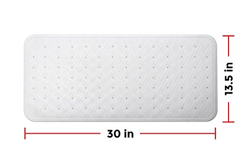 Anti-Slip Bathtub Mat, Antibacterial & Mildew Resistant,Top Quality Natural Rubber for Tub (VASCA) & Shower,Firm Suction Cups,Drain Holes,Grip Anti-Skid,Pattern Design, 30inX13.5in, White