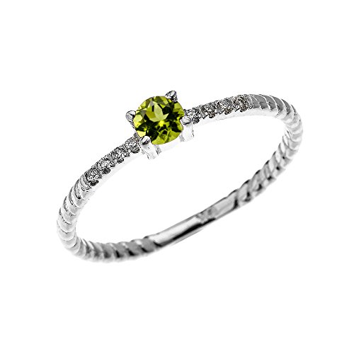 -. Binding : Jewelry -. Brand : Dainty and Elegant Gold Rings -. Department : womens -. Feature : Beautiful dainty round peridot solitaire stackable diamond ring / expertly handmade with 10k white gold in fine polished finish / comes with free special deluxe jewelry gift box / made in the USA yet offered at factory direct jewelry price / ships directly from the manufacturer to the customers -. Label : Claddagh Gold -. Manufacturer : Claddagh Gold -. Model : QR1857W -. MPN : QR1857W -. PartNumber : QR1857W -. ProductGroup : Jewelry -. ProductTypeName : FASHIONRING -. Publisher : Claddagh Gold -. Studio : Claddagh Gold -. Title : 10k White Gold Dainty Diamond and Solitaire Peridot Rope Design Stackable/Proposal Ring