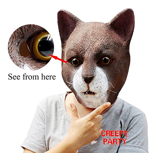 -. Feature : Made from 100% natural latex, environmental and non-toxic. There are lots of masks which vary from poor quality to really amazing. This is one of the best masks that are available for it's P.R.Ice. / The first improvement compare to old version and other store: easier to see out of now! We have opened up the eye holes wider (please look at picture 2). If you still want a better visibility and breathability, it's not hard to do and it doesn't ruin the look of the mask if you enlarge the eye holes and mouth hole a bit. The second improvement compare to old version and other store: resin eyeballs! Which makes this cat much more realistic and lively now. ( please look at picture 3). / All the pictures are real and photoed by our customers. Perfect for a fun meme, halloween, christmas, easter, carnival, costume parties, tag party or simply for going to a night club. Anyway, it will see plenty of use at times other than halloween! / Creepyparty is an amazon registered brand. See more creepy and fun masks, please visit our store creepyparty-seaton: http://amzn. To/21kcuur. / There are lots of masks which vary from poor quality to really amazing. This is one of the best masks that are available for it's P.R.Ice.