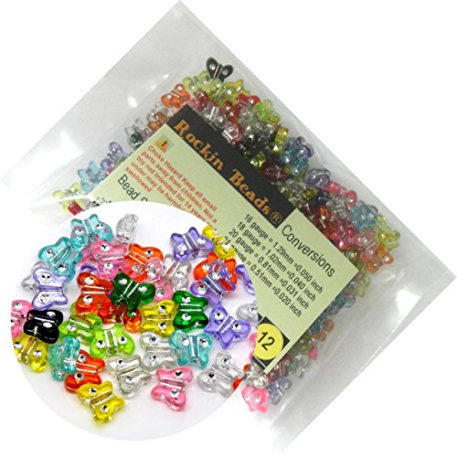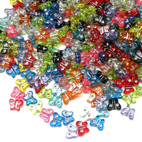 Rockin Beads Brand, 280 Mixed Acrylic Butterfly with Rhinestone Spacer Beads 11x9mm (1mm Hole)