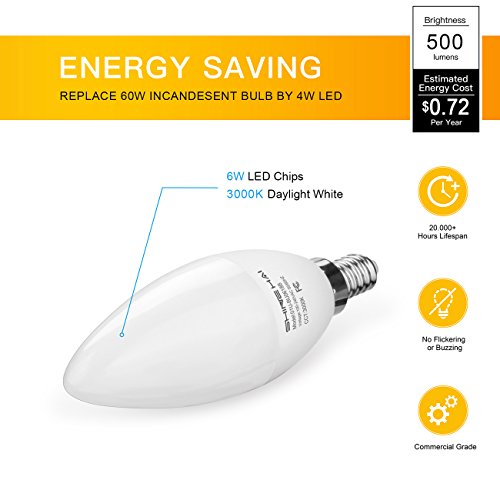 - Save 88% instantly: SHINE HAI Candelabra LED Bulbs replace 50 watt incandescent bulbs by 6W LED, instantly save over 88% on electricity bill of lighting.