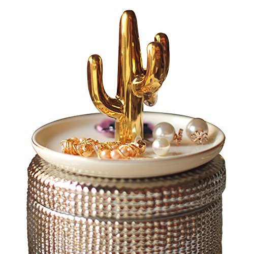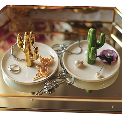 Ceramic Cactus Gold Jewelry Rings Holder Tower Dish Plate Organizer Home Decor Dresser Top /Trinket Tray