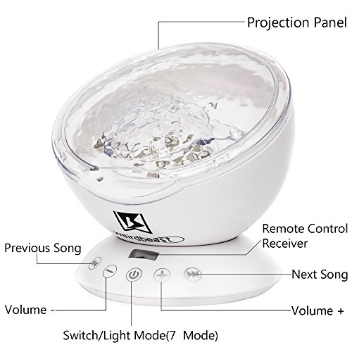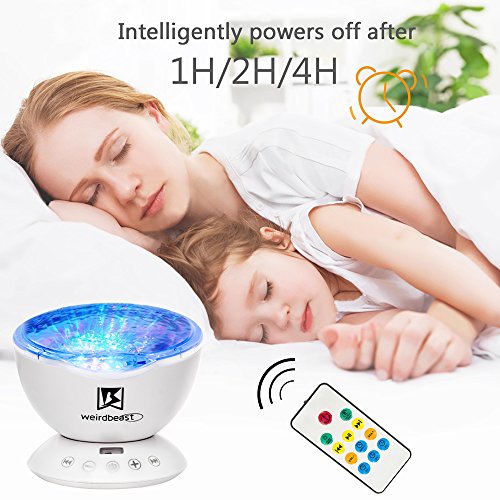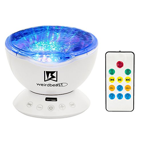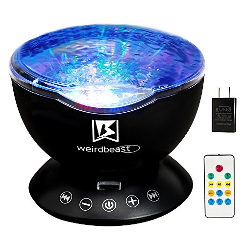 Weirdbeast Generation 3 Ocean Wave Nightlight with four relaxing audio presets mimicking nature. Remote control included. Auto Power Off Timer. A breeze to operate!