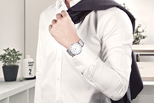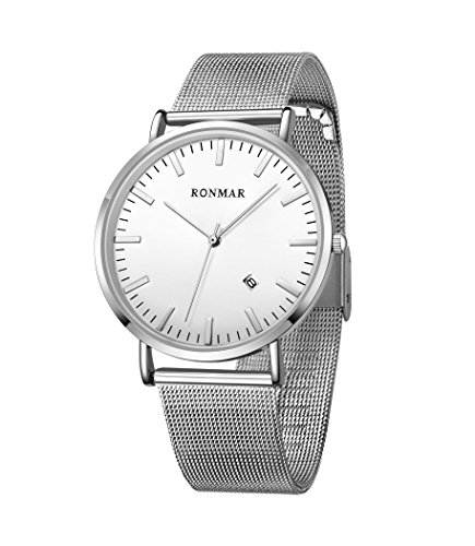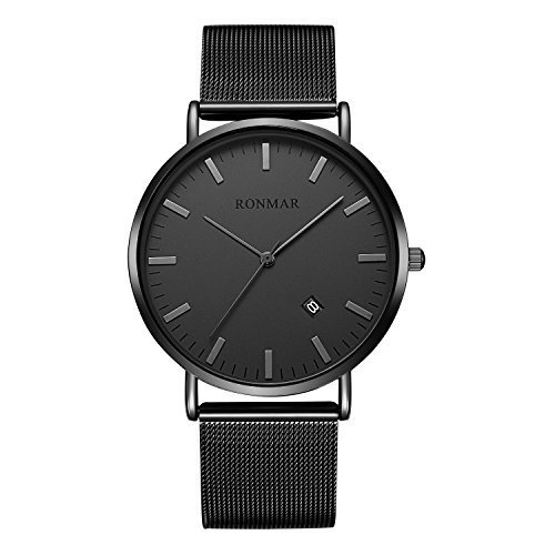 -. Title : 腕時計 超薄型 軽量 亜鉛合金ケース ステンレス製のブレスレット 30M防水 日付表示 男女兼用 ブラック…