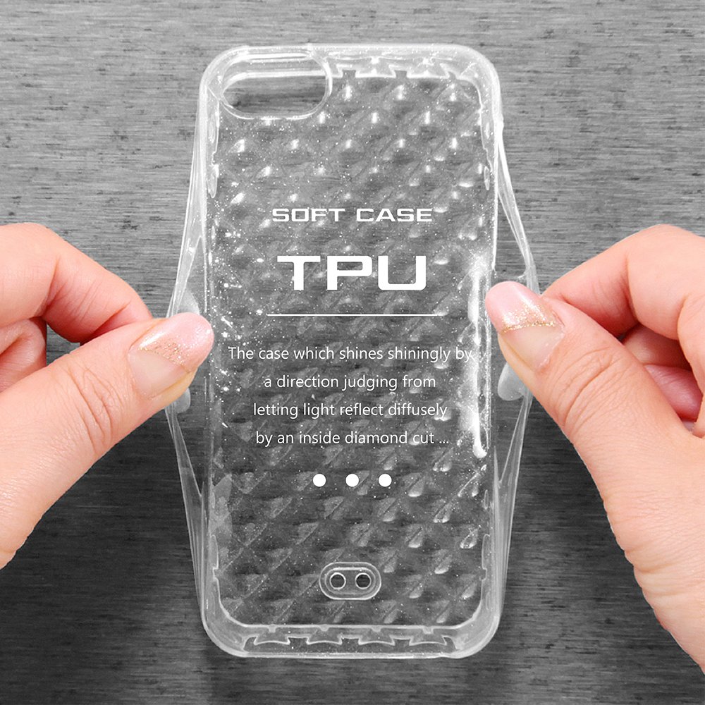 It is TPU (thermoplastic polyurethane resin) material with dull and dirt resistant and supple texture.