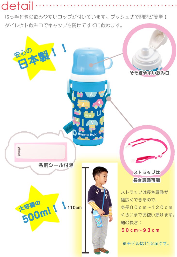 Hanna Hula Kids' Cup with Plain Bottle Strawberry Lunch Series Water Bottle Push Type Opening and Closing Japanese Making Machine OK Name Sealed Cute Lunch Bento Goods