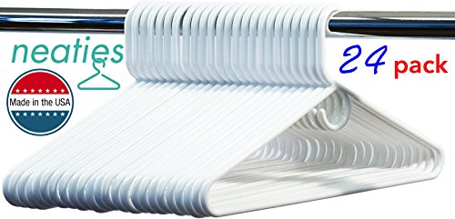 -. Binding : Kitchen -. Brand : Neaties -. Color : White -. EAN : 0780456993407 -. Feature : Made in the USA and sold EXCLUSIVELY by USAtoZ / Heavy duty and high impact tubular plastic adult hangers made to last a lifetime / Hook feature for scarfs, belts, etc. / Single unit dimension is 17" x 9" x 3/8" / Set of 24 -. IsAutographed : 0 -. Label : Neaties -. Manufacturer : Neaties -. ProductGroup : Home -. ProductTypeName : HOME -. Publisher : Neaties -. Studio : Neaties -. Title : Best Heavy Duty White Hangers, USA Made High Impact and Super Long Lasting Thick Tubular Hangers; Set of 24 -. UPC : 780456993407
