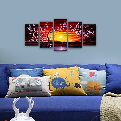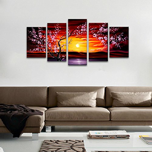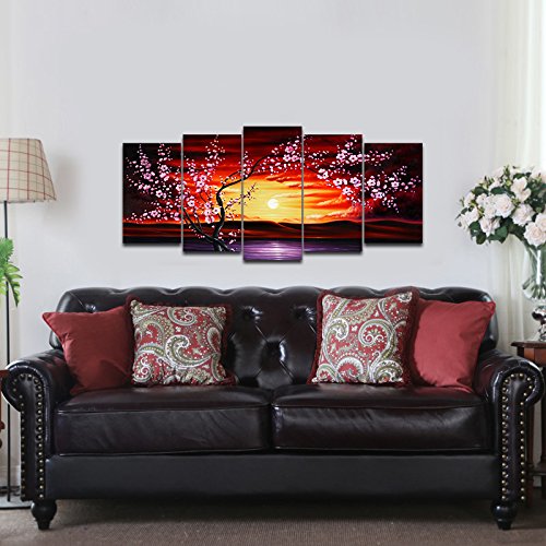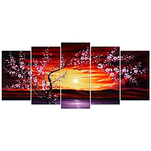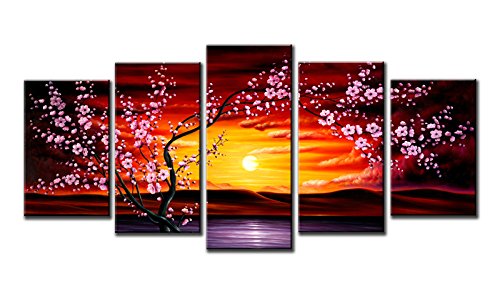 -. Title : Wieco Art 5 Panels Plum Tree Blossom Modern Giclee Canvas P.R.Ints Flowers Artwork Contemporary Abstract Floral Paintings on Canvas Wall Art for Hot sale Home Decorations Wall Decor