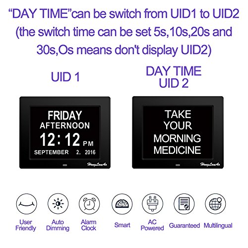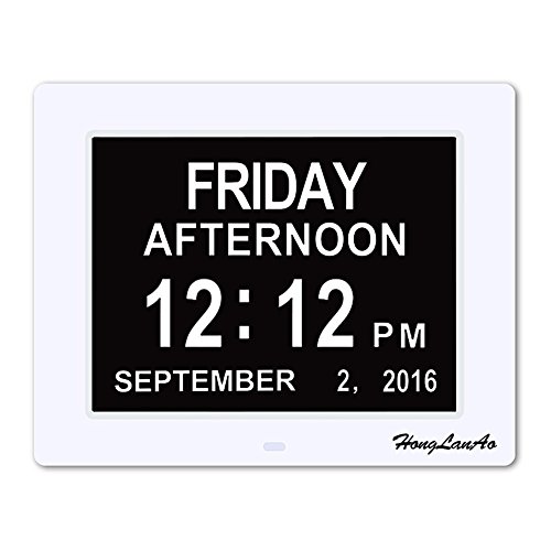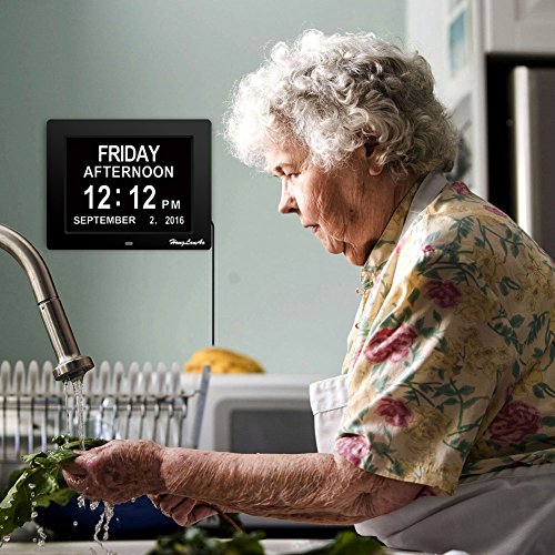 ◆ This unique 'High Resolution' digital day clock clearly spells out the full DAY of the Week, MONTH and DATE in large, bold letters - with no confusing abbreviations. Many seniors suffering from memory loss due to dementia, stroke, Alzheimer's or just advancing years, often have difficulty processing abbreviated words.