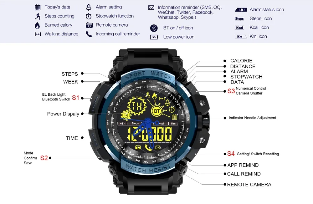 Function:Message Reminder,24 hour instruction,Passometer,Alarm Clock,Big Three Needles,Call Reminder,Calendar