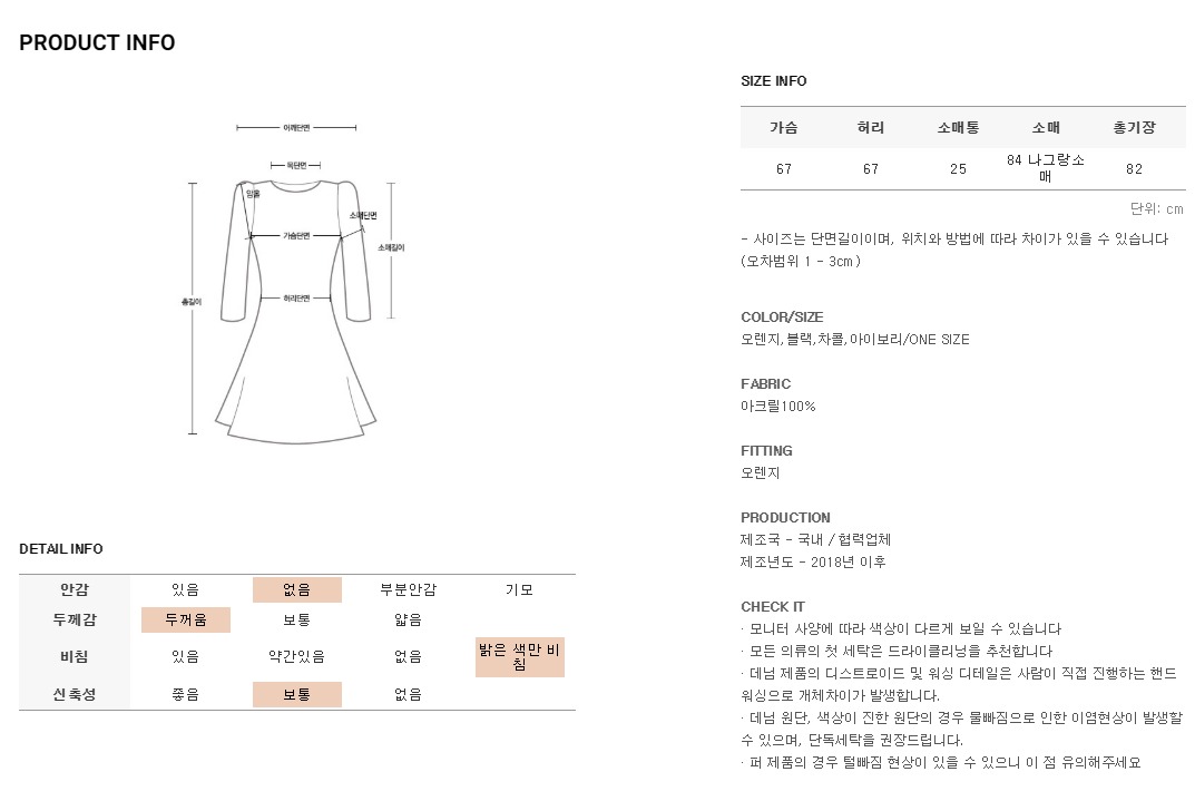 ONE SIZE로 제작되어 44-77사이즈 분들께 추천해드려요