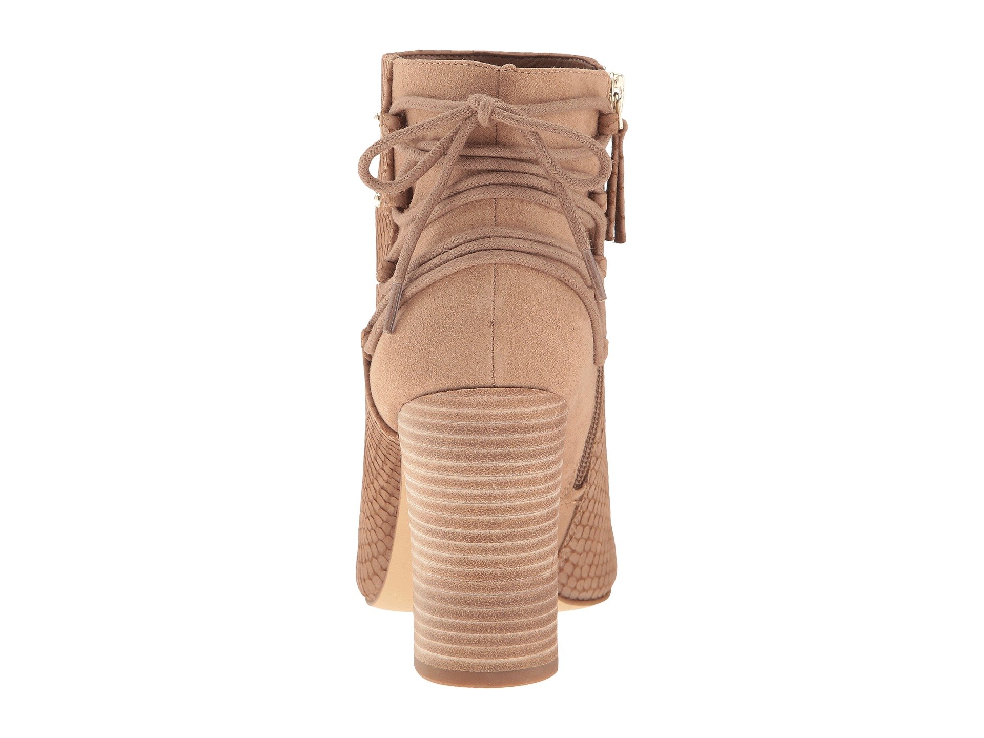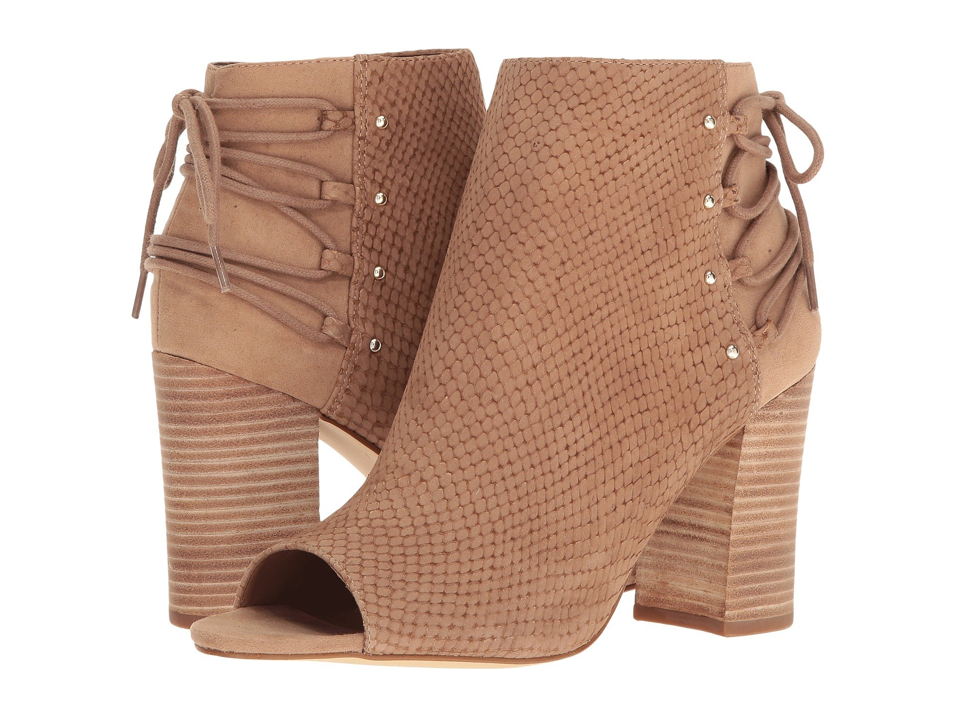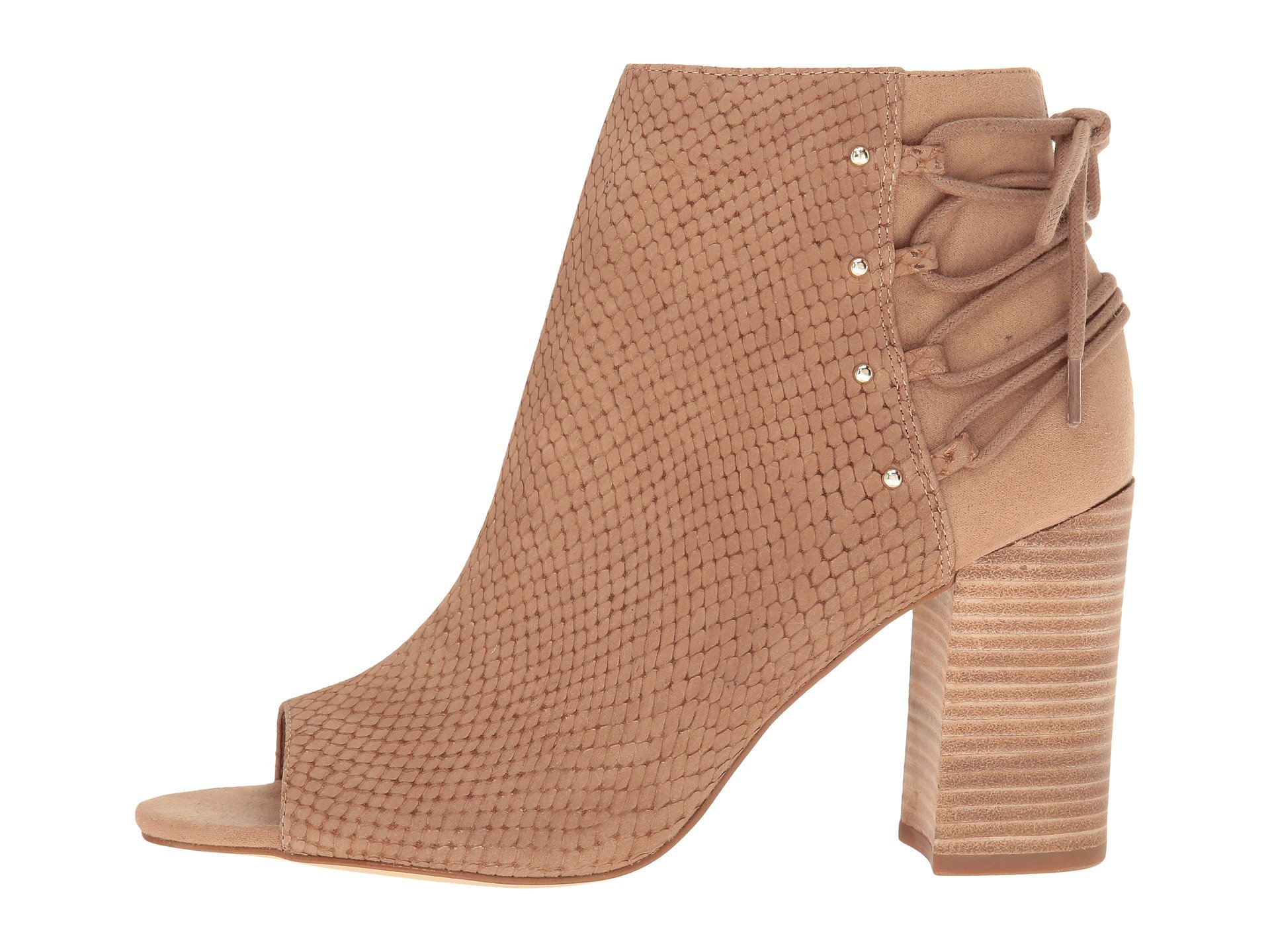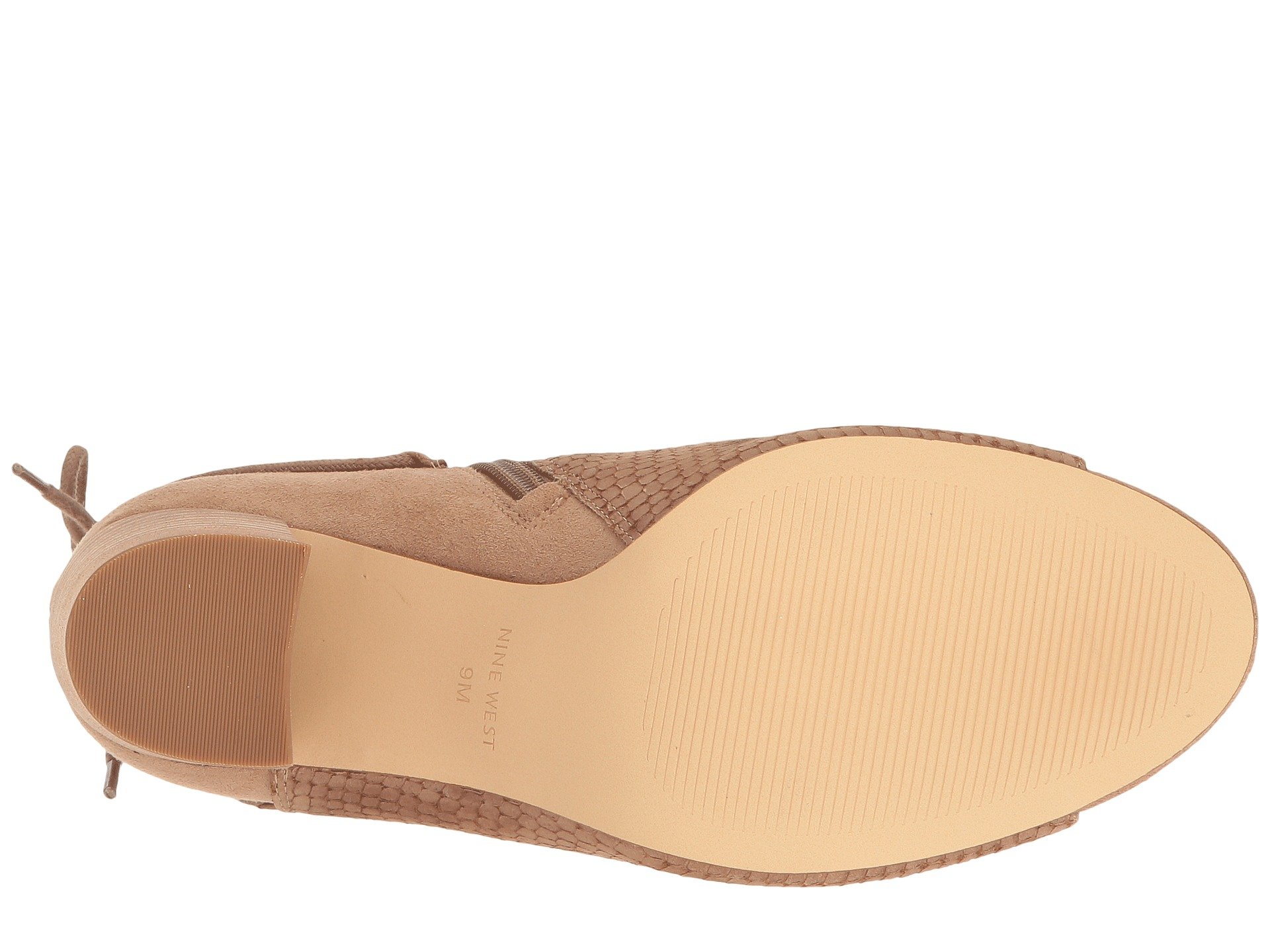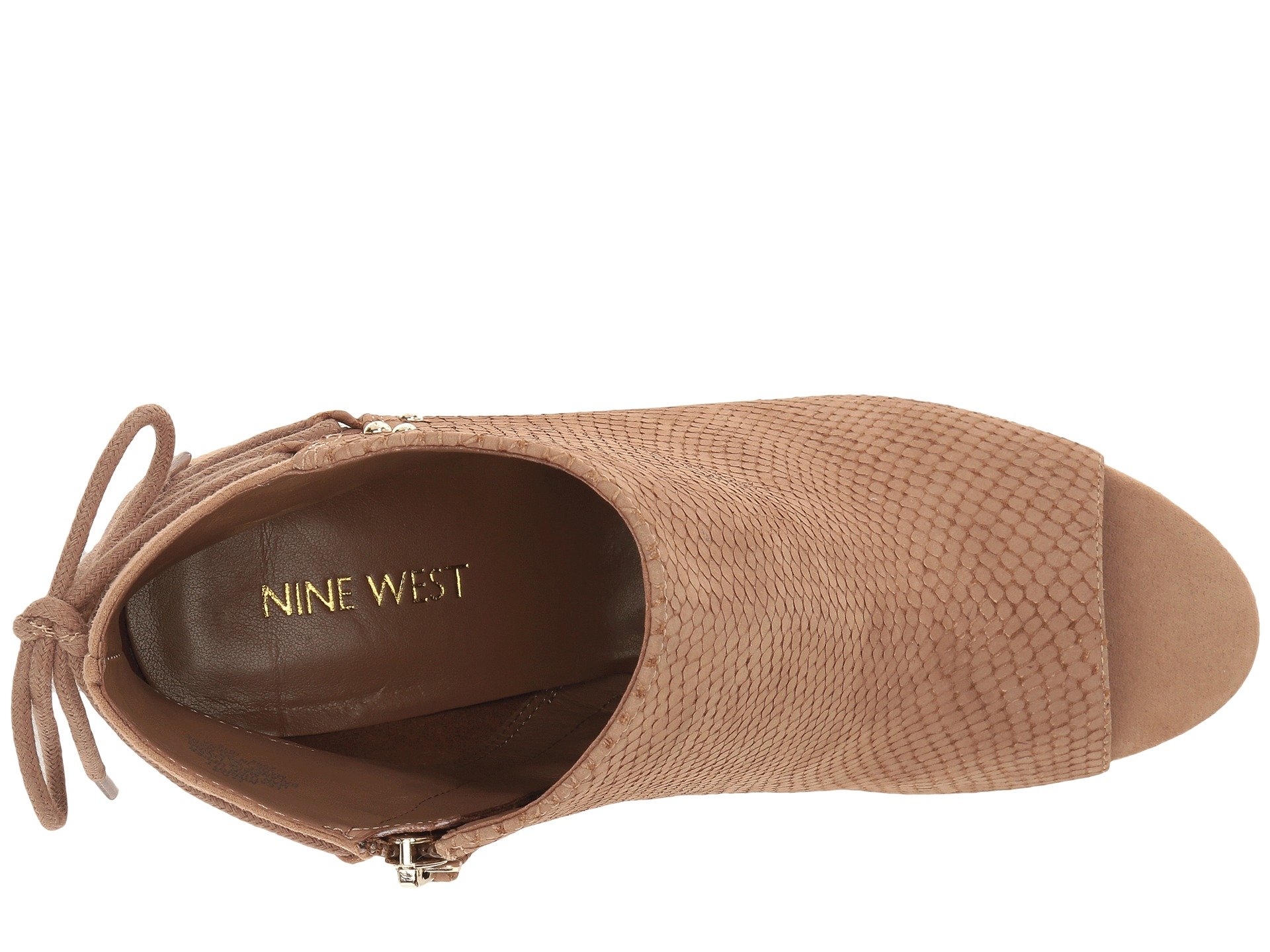 | Product Information SKU: #8849522The Nine West? Britt open-toe bootie flaunts a modern design with versatile appeal.Suede or nubuck upper.Lace-up back with side zippered closure.Open toe.Man-made lining.Lightly padded footbed.Stacked block heel.Man-made outsole.Imported.Product measurements were taken using size 9, width M. Please note that measurements may vary by size.Weight of footwear is based on a single item, not a pair.Measurements: Heel Height: 3 1?4 in Weight: 13 oz Circumference: 10 in Shaft: 5 3?4 in |