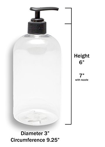 - PERFECT SIZE - These 16 ounce pump bottles are LARGE enough so you are not continuously refilling them. They are LIGHTWEIGHT and EASY-TO-HANDLE in your bath and shower areas. The pump bottles will hold 16 FLUID OUNCES which is equal to two cups and is a good hold-in-your-hand size container.
