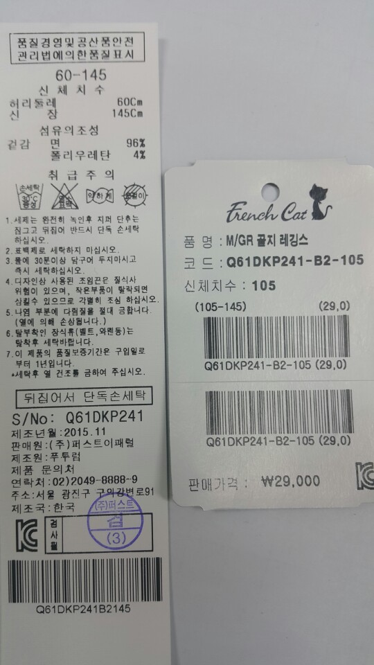 ■소       재 : 겉감 : 면 96%, 폴리우레탄 4%