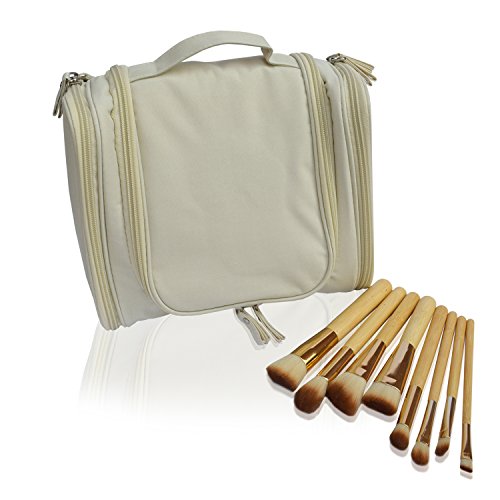 Makeup Bag With Bonus Makeup Brushes: Travel Cosmetic Makeup Bag For Women, Large Waterproof Hanging Bag With Strong Zippers And Many...