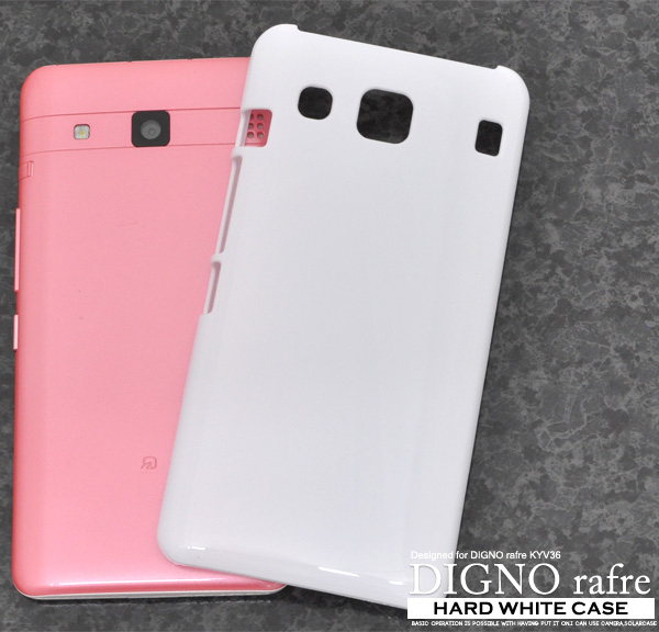 シンプルなホワイトの、DIGNO rafre KYV36専用ハードホワイトケース。