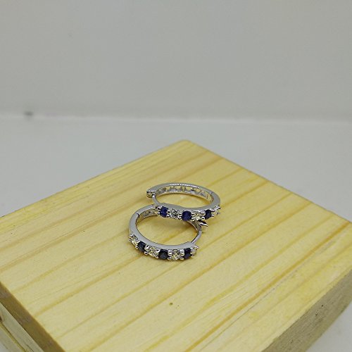 This lovely huggie hoop earrings feature blue sapphire & white diamonds in prong setting. All stones are sparkling and 100% natural. All our products with FREE gift box and 100% Satisfaction guarantee. Blue Sapphire is very dark blue in color - Color varies from photo. SKU # DR0360-1802Feature