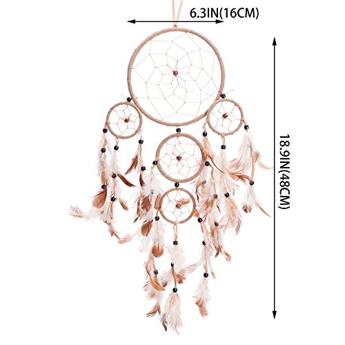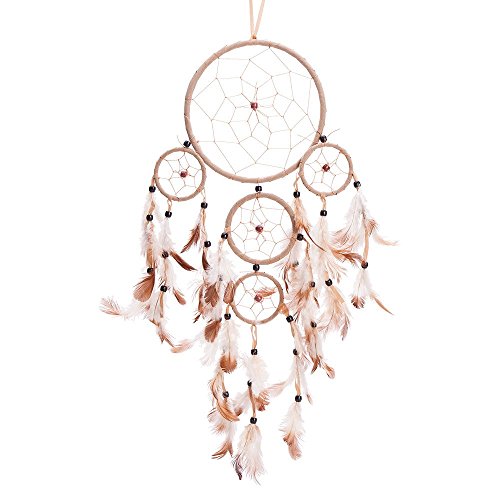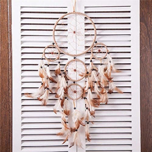 22" Traditional Beige Dream Catcher with Feathers Wall or Car Hanging Ornament 5 Circles