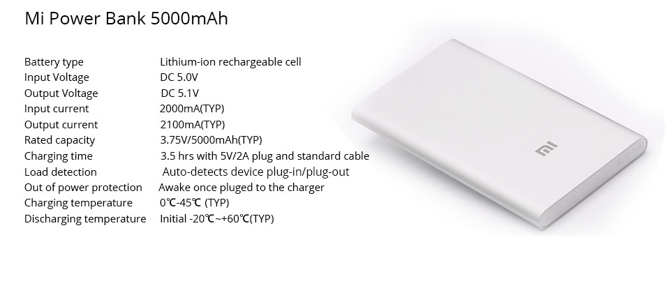 Original Xiaomi Power Bank 5000mAh Mi Portable Charger Slim Powerbank