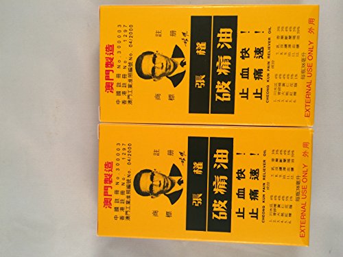 -. Feature : cheong kun pain reliever oil 38 ml / 2 boxes / For the temporary relief of minor aches and pains of muscles and joints