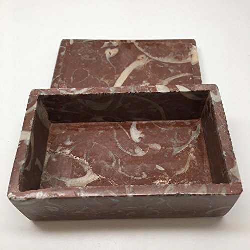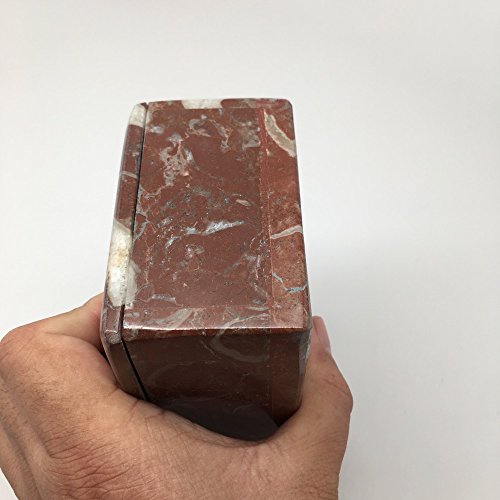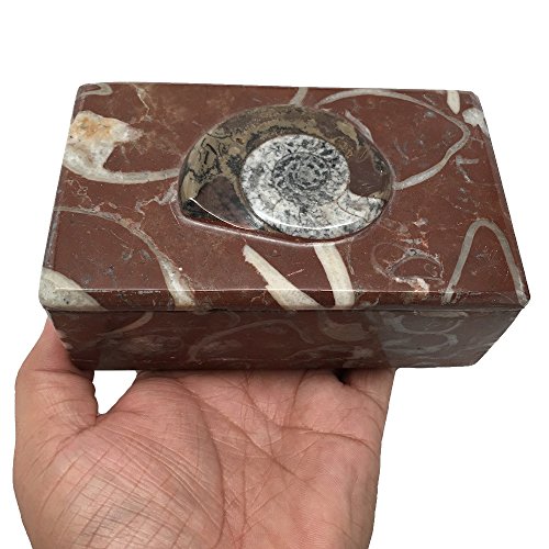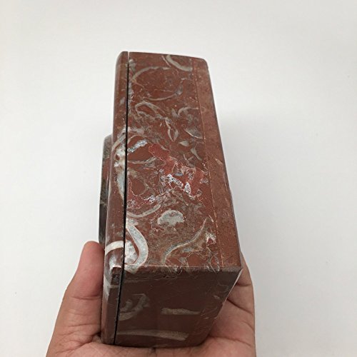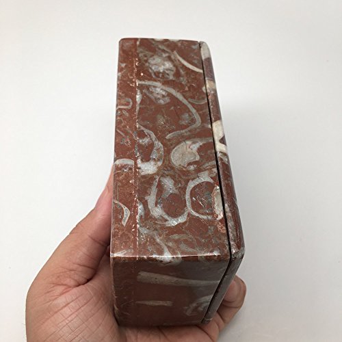682 Grams, 5" x 3" x 2" Rectangle Shape Fossils Ammonite Red Jewelry Box from Morocco, MF646