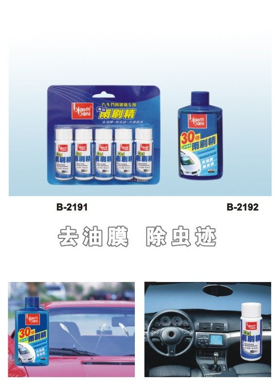 Concentrated wipers fine, can quickly remove the glass film, insect trace.This product adopts German technology production, is a kind of high efficient cleaning agent, at the same time the rain wiper rubber anti-agingfunction, maintain flexibility, prolong the service life. In the rainy day justspray to the car glass, instant removal of oil film, make the line of sightbetter, safer driving.