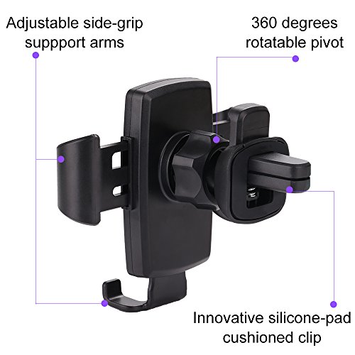 - Stable and Scratch-proof - Equipped with Elastic Clamp, hold the Air Vent firmly. Soft rubber mats are added on both the arms of the phone holder and the vent clamp, slip-proof&shock-proof, protect the air vent of your car and cellphone from damaging.