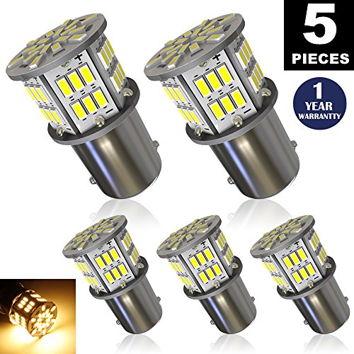 New generation 12-24v !Super Bright Low Power !5 x 650 Lumens 1156 1141 1003 3014 54smd Led Light bulb Use for Back Up Reverse Lights,Brake Lights,Tail Lights,Rv lights (Warm White)