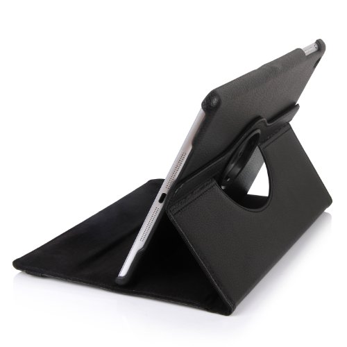 - Feature : Specially designed for Apple iPad Air Only / Premium PU leather exterior with soft microfiber lining interior / 360 degrees rotating swivel allows the iPad to rotate both vertically and horizontally while in the case / Built-in Stand for watching movie or typing / Comes with 1 Screen Protector, 1 Stylus and Microfiber Digital Cleaner
