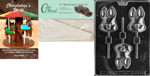 Cybrtrayd 45St25Bk-E409 'Cute Bunny Lolly' Easter Chocolate Candy Mold with 25 4.5-Inch Lollipop Sticks and Chocolatier's Guide