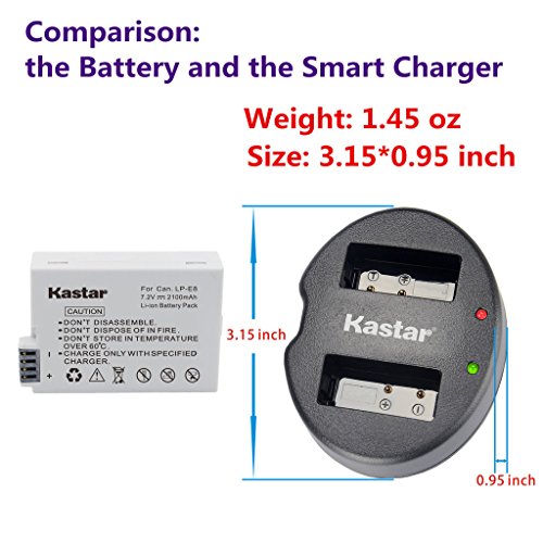 Kastar Dual USB Charger for Canon LP-E8, LC-E8E and Canon EOS 550D, EOS 600D, EOS 700D, EOS Rebel T2i, EOS Rebel T3i, EOS Rebel T4i, EOS Rebel T5i Cameras, Grip BG-E8
