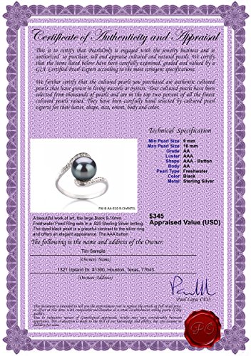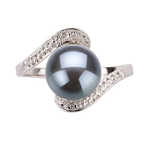-. Title : PearlsOnly Chantel Black 9.0-9.5mm AA Freshwater Sterling Silver Cultured Pearl Ring