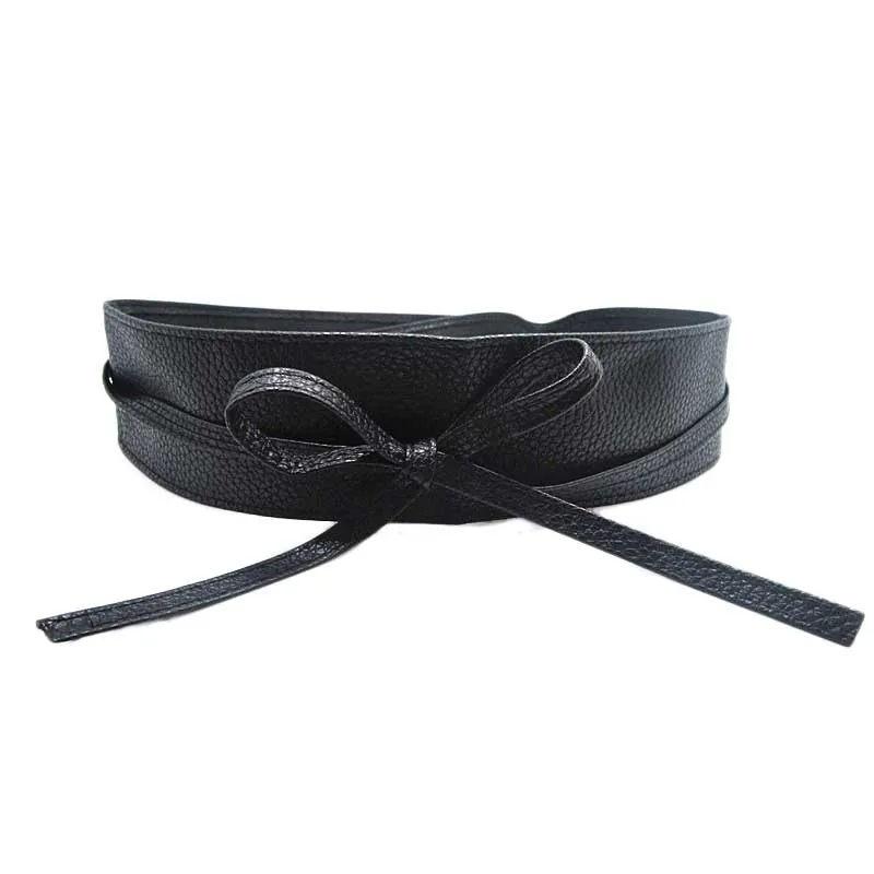 New Fashion Women belt Soft Leather Wide Self Tie Wrap Around Waist Band Dress Belt Y1
