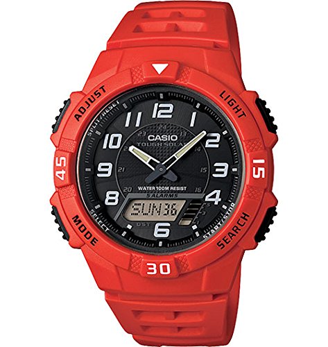 -. Title : Casio Men's AQ-S800W-4BVCF Solar-Power Red Resin Watch