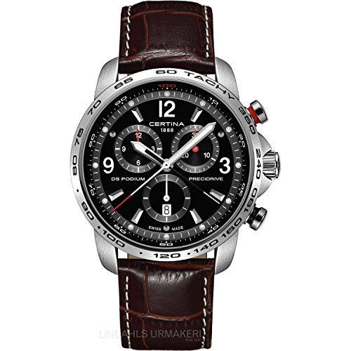 -. Title : Certina DS Podium Big Size - Chronograph Genuine Brown Leather Mens Quartz Watch C0016471605700
