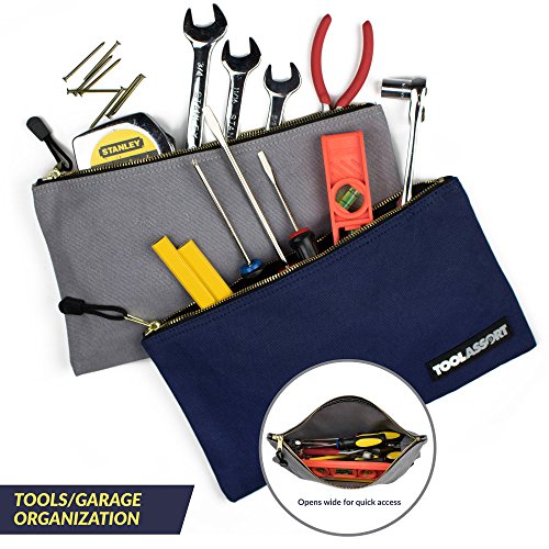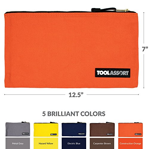 -. Title : 5-Pack - Heavy Duty 16 oz. Canvas Tool Bags with Metal Zipper, 12.5" x 7" | Organize, Sort and Storage Pouch