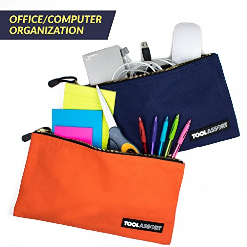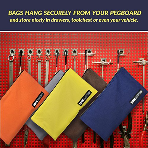 -. Feature : SMART ORGANIZATION: Organize, sort and store with 5 assorted colors. Give bags to different workers on the job site or organize different areas of your home. / ONE-PIECE CONSTRUCTION: Durable heavy duty 16 oz canvas material, super strong, built to last! / NOT JUST FOR TOOLS: Use for gardening, arts/crafts, office, banking, woodworking, electronics, networking. / DEPENDABLE SMOOTH SLIDING METAL ZIPPERS: Provide easy access to all of your materials. / VALUE and SIZE: Each bag in this versatile 5 pack measures 12.5" X 7" accommodating most small to medium size tools/parts and accessories.