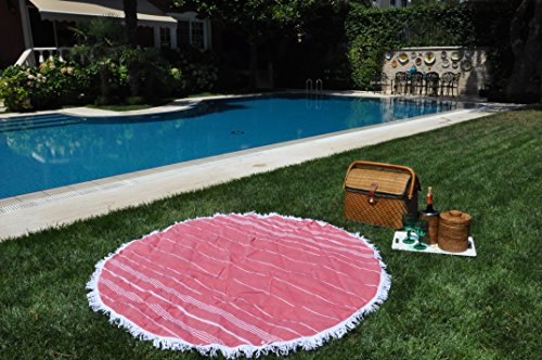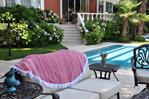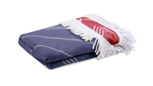 100% Natural Turkish Cotton Multi Purpose Double Sided Blanket - Beach / Pool / Yoga / Baby Play Mat / Table Cloth / Patio Furniture Throw with Tassels - 60" (Red / Navy Blue)