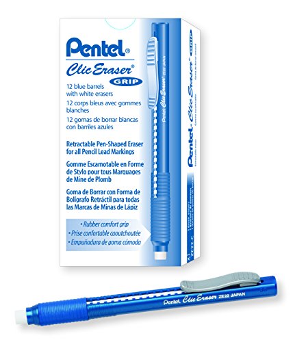 Pentel Clic Eraser Grip, Retractable Eraser, Blue Barrel, Box of 12 (ZE22C)