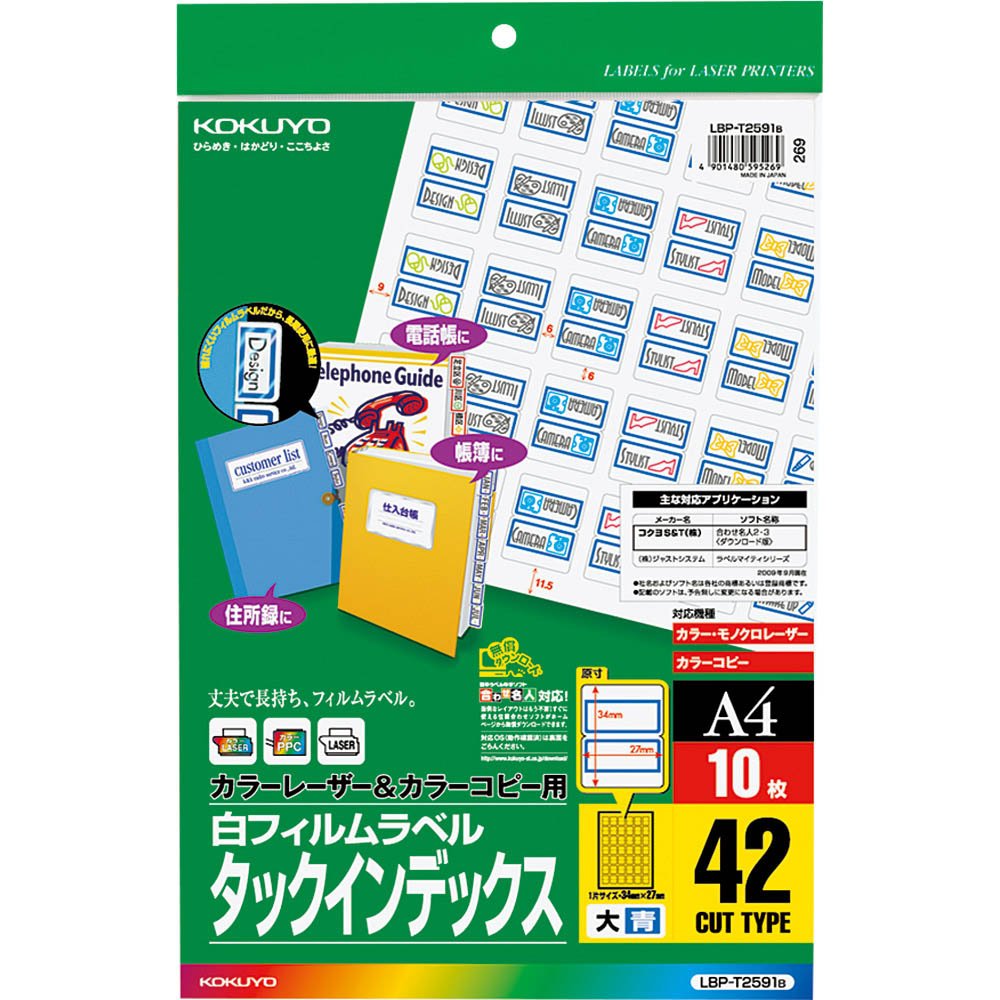10 pieces of LBP-T2591B A4 42 face Kokuyo color laser and color copy tack index film label blue (japan import)