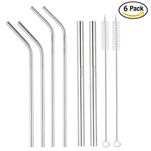 - 6 pack of straws + 2 Cleaning Brush. Including two 8", 10" Bend straws and two 8.5" wide straight straws, fits for most cups